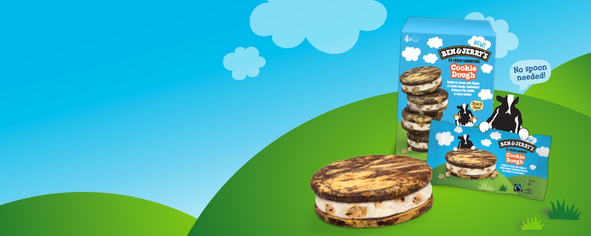 Grab indulgence by the cookies with the Cookie Dough ice cream sandwich, featuring double-delish, cocoa and vanilla marbled cookies. Cookies and ice cream...what more could you want?